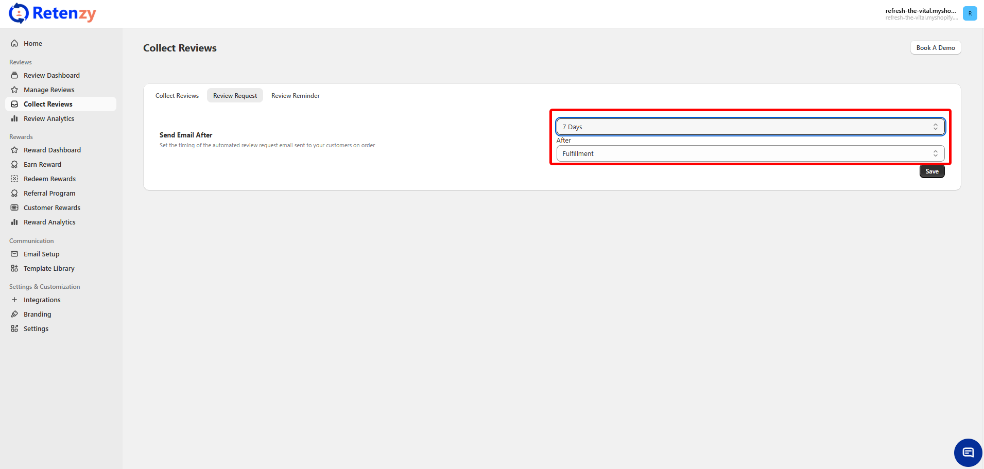 Automating review request emails ensures you never miss an opportunity to collect valuable customer feedback. With Retenzy’s automation feature, you can schedule review request emails to be sent after a specific event, like order fulfillment.