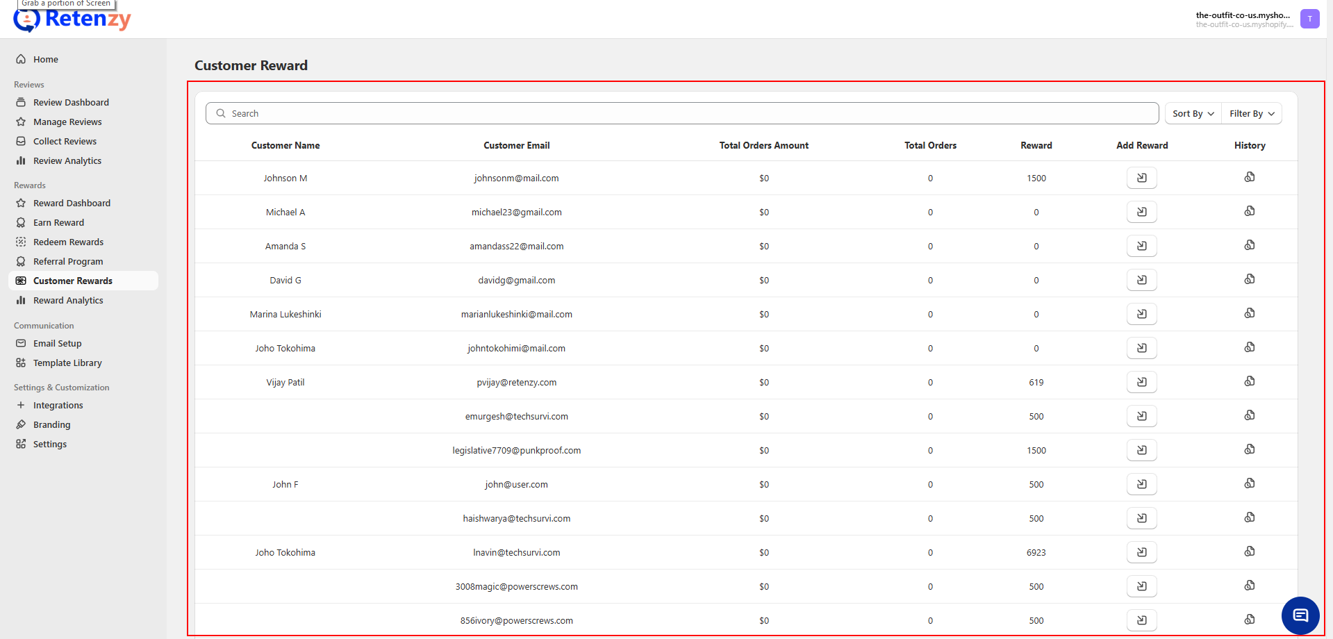 The Customer Rewards section provides a detailed view of each customer’s order activity and reward balance. This helps you monitor customer engagement, track loyalty, and manage rewards effectively.