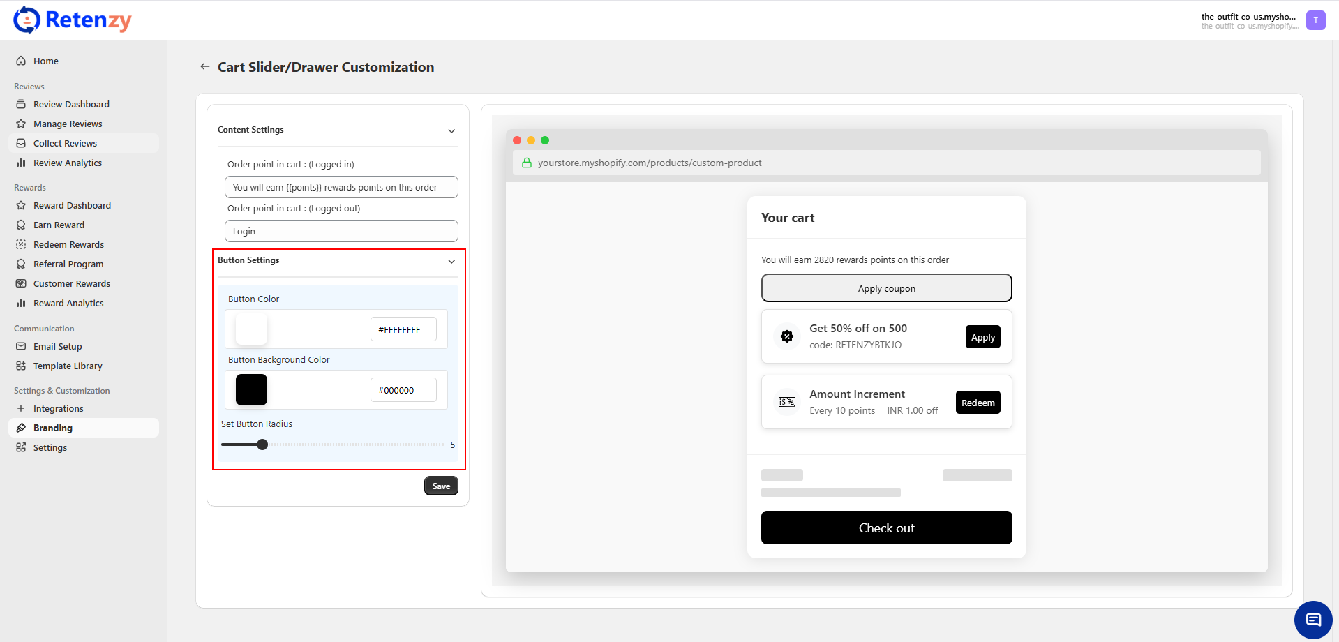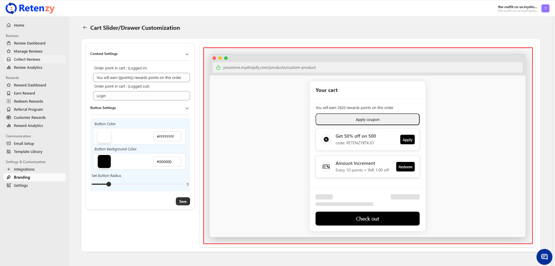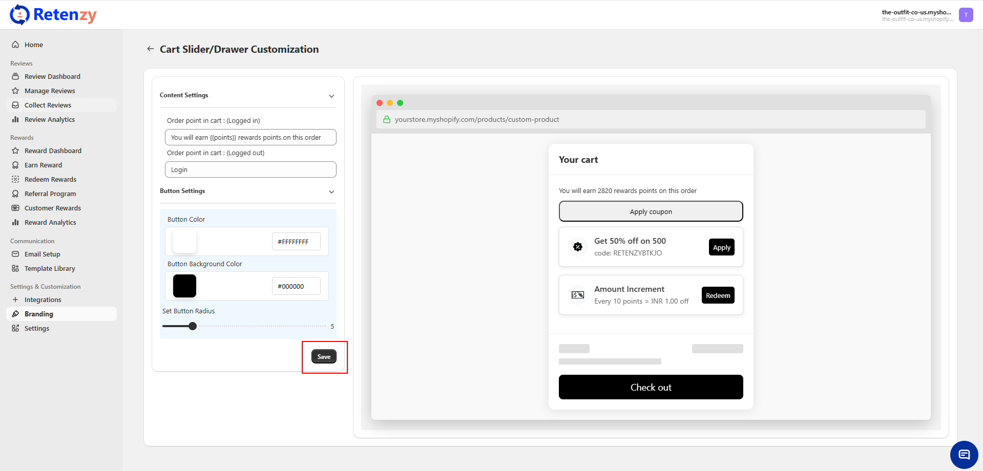 Once satisfied, click Save to publish the updated widget on your store’s cart slider/drawer.