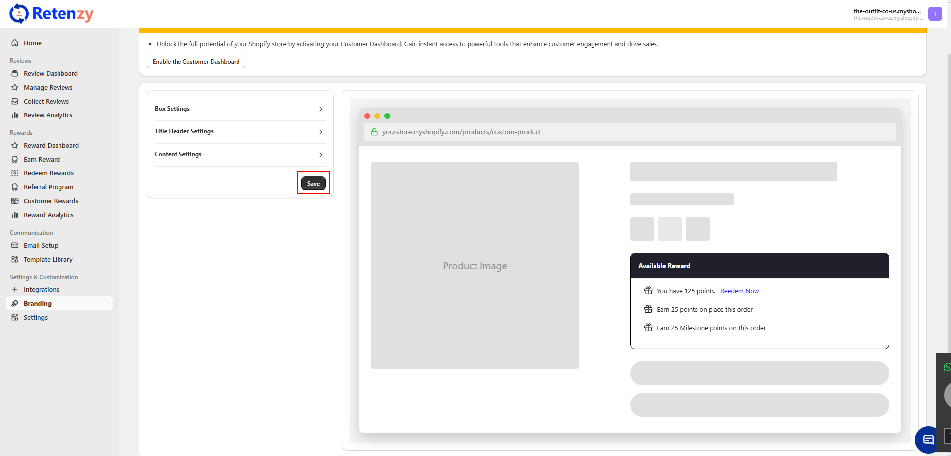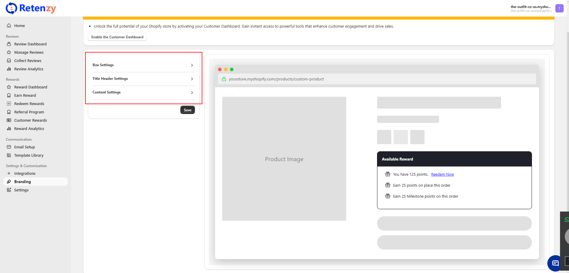 On the right-hand side, you’ll see a live preview of how the reward box appears on the product page.