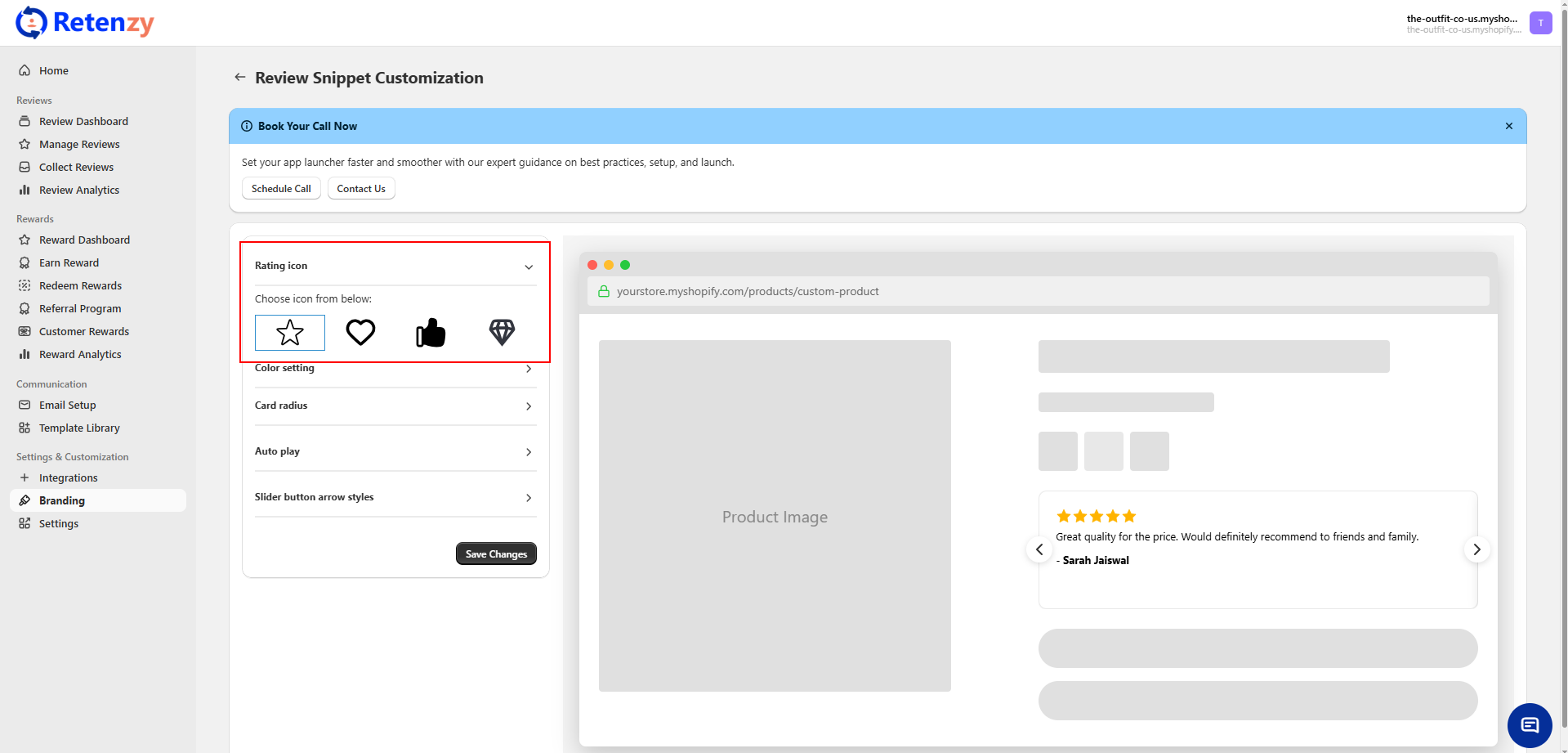 Pick a rating icon style (⭐ Star, ❤️ Heart, 👍 Like, 💎 Diamond).