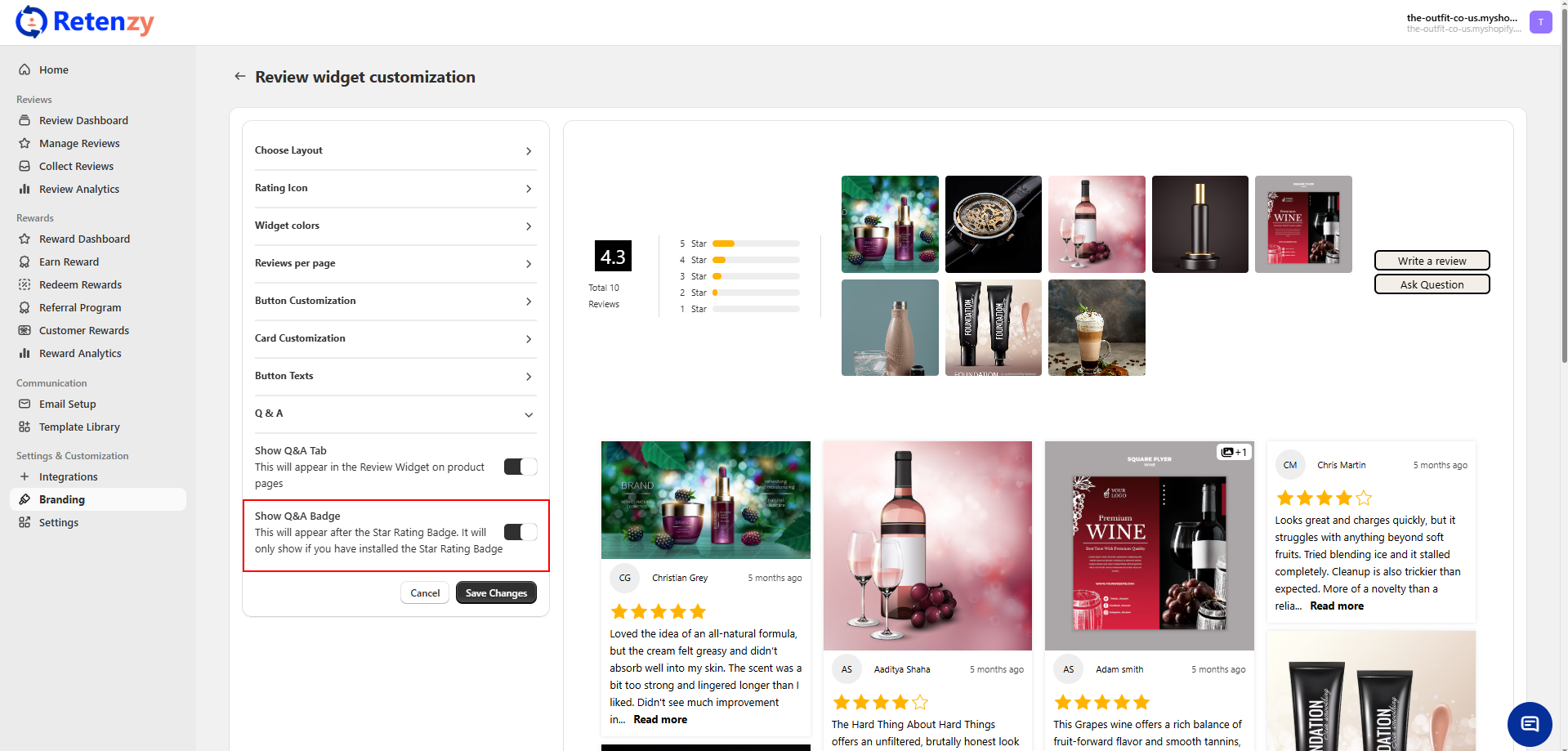Toggle the switch ON if you want the Q&A badge to appear after the Star Rating Badge.