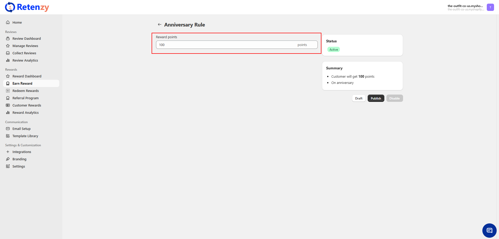 ✅ Once published, customers will automatically receive the set reward points on their anniversary.
