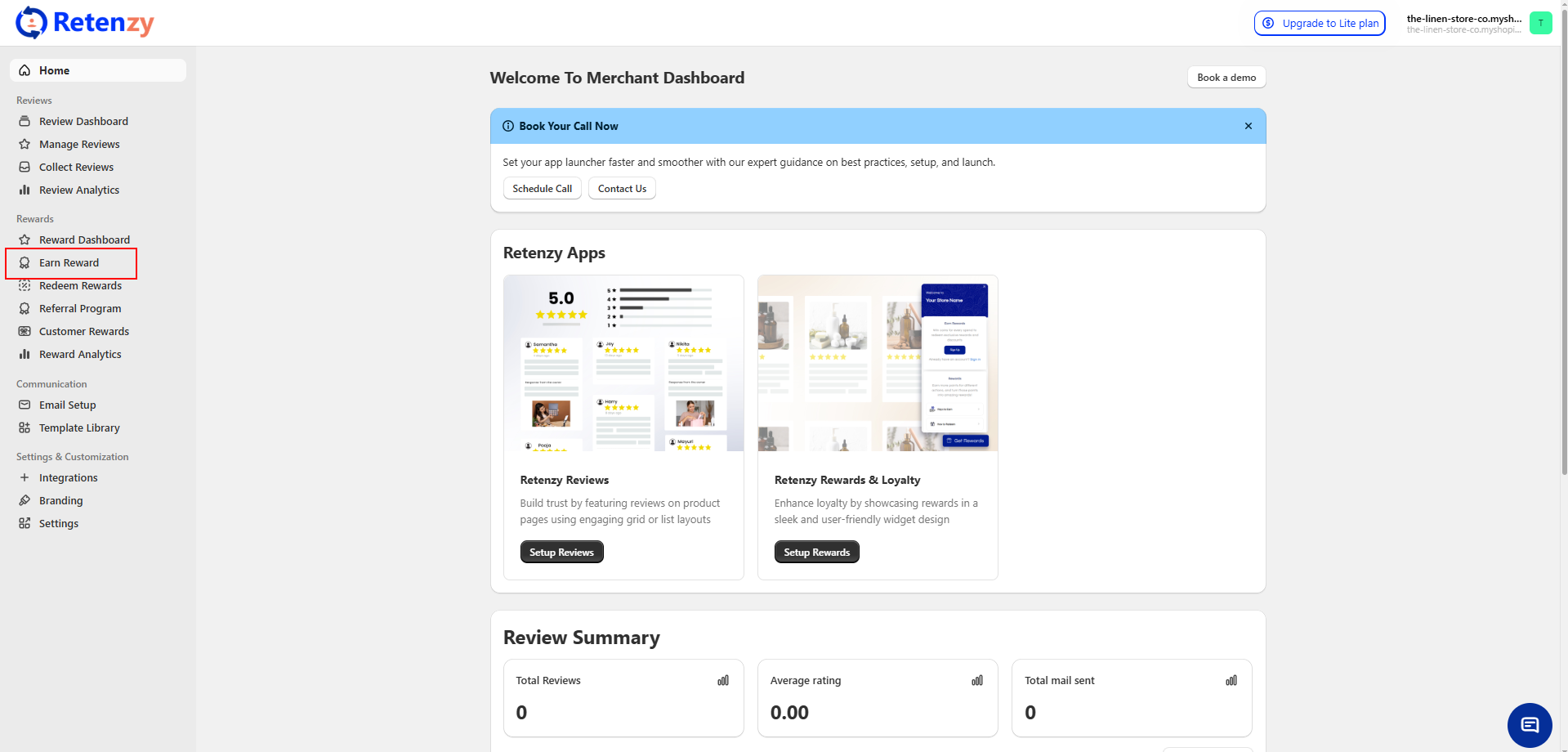 From the Retenzy home page, go to the left-hand menu and click on Earn Reward.