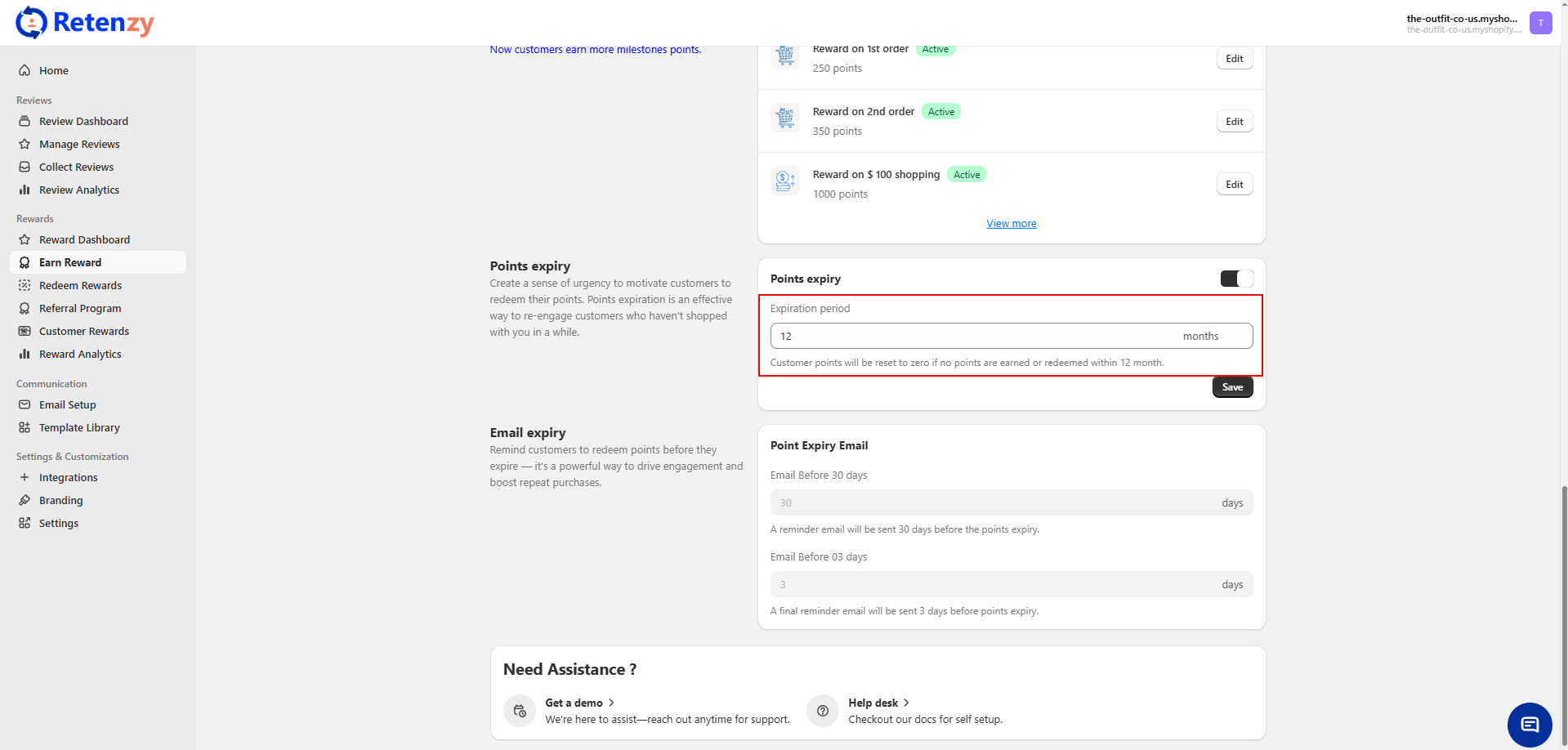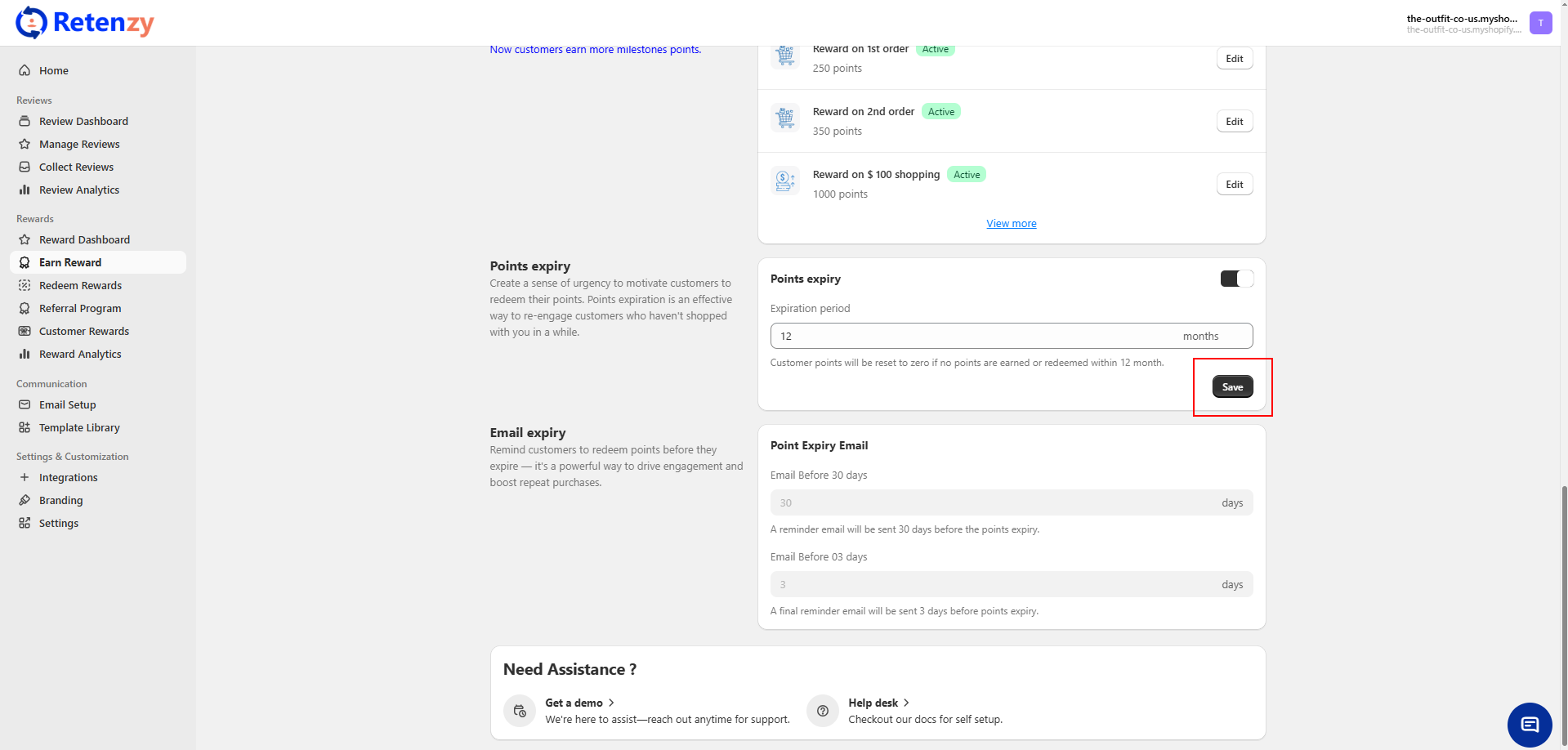 Click Save, and the expiry rule will be applied. Customers’ reward points will now expire automatically based on your set duration.