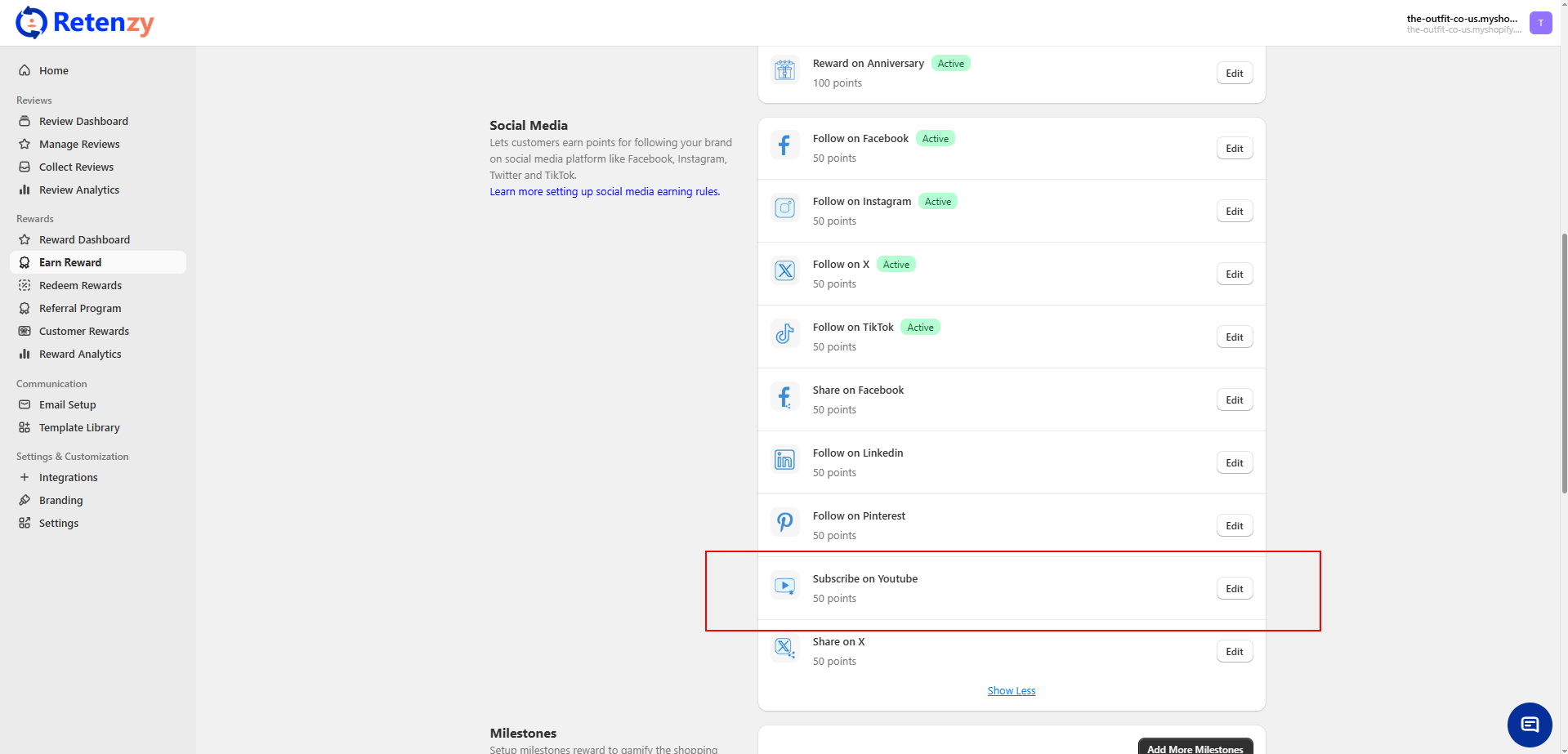 👉 Customers will now earn reward points automatically after subscribing to your YouTube channel.