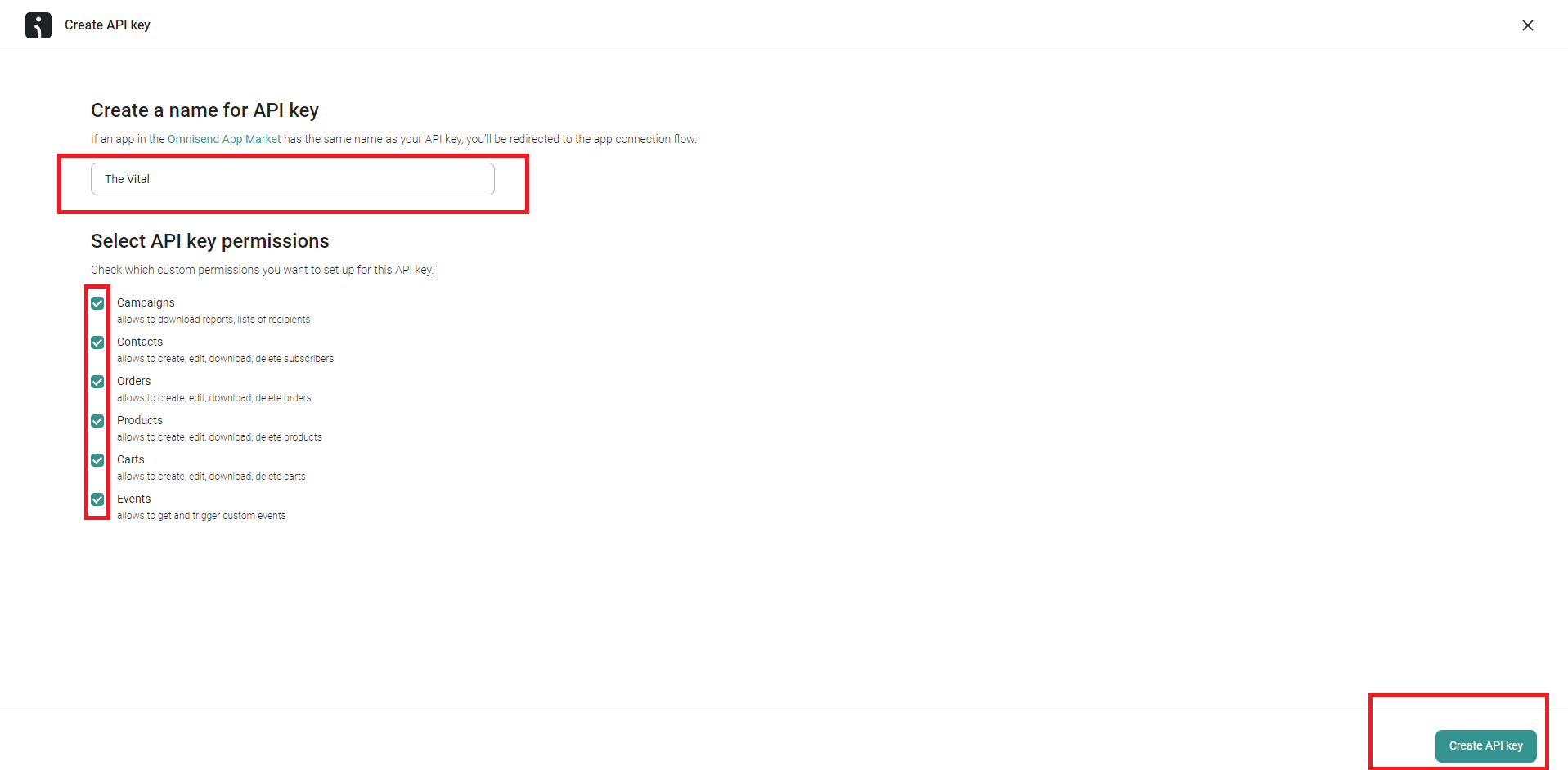 Step 5: Give name to API Key ,check all permissions and click on Create API Key button.