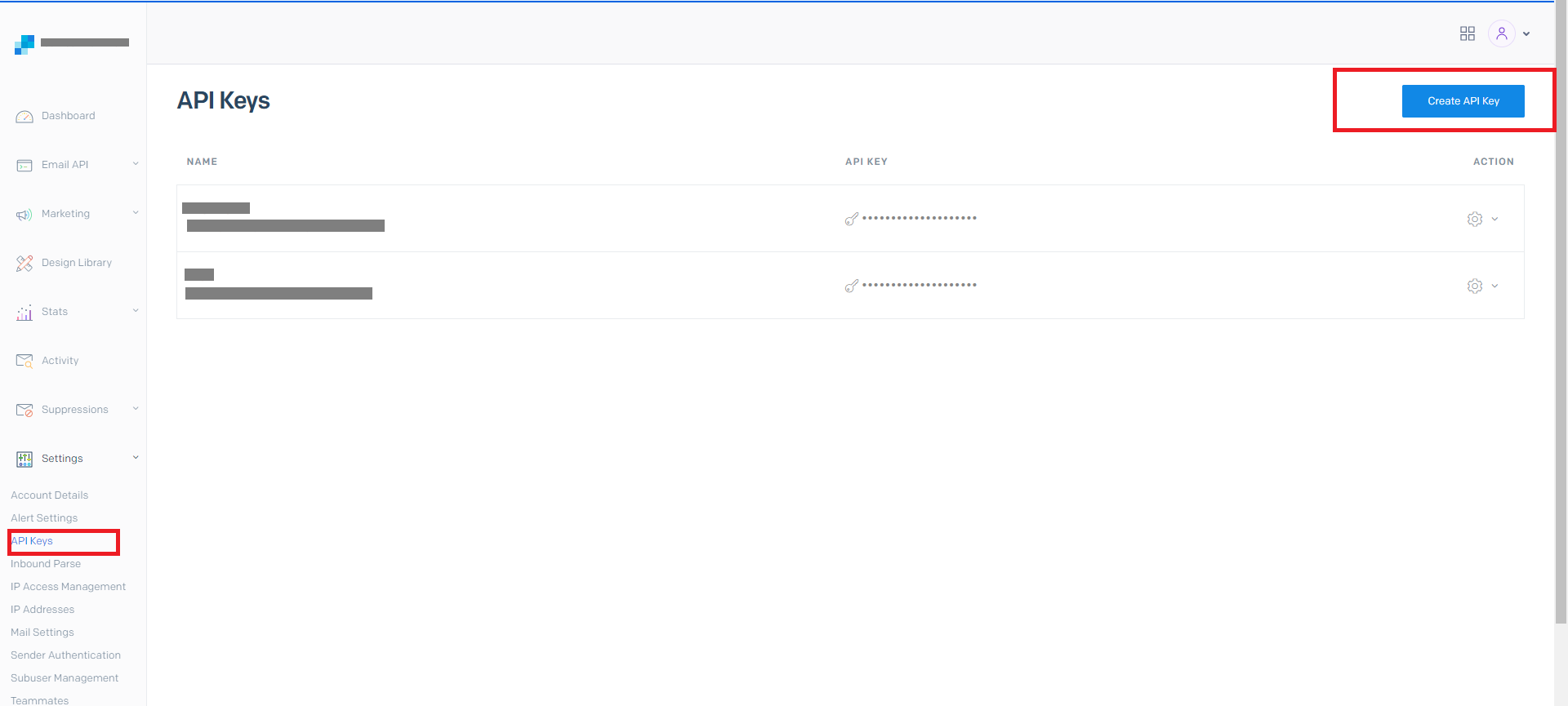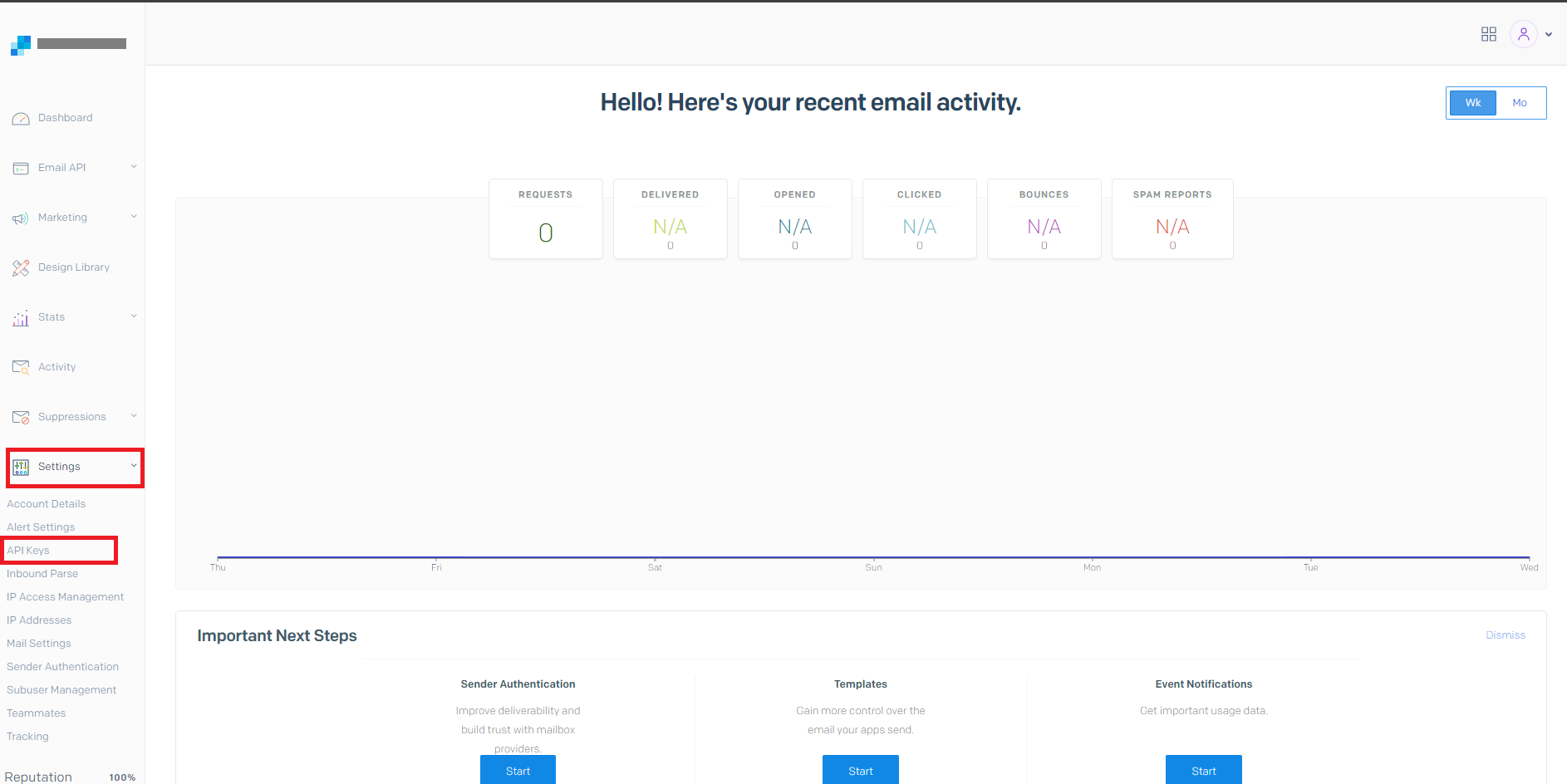 Step 2: Go to your Sendgrid account, click on setting and click on API Keys.