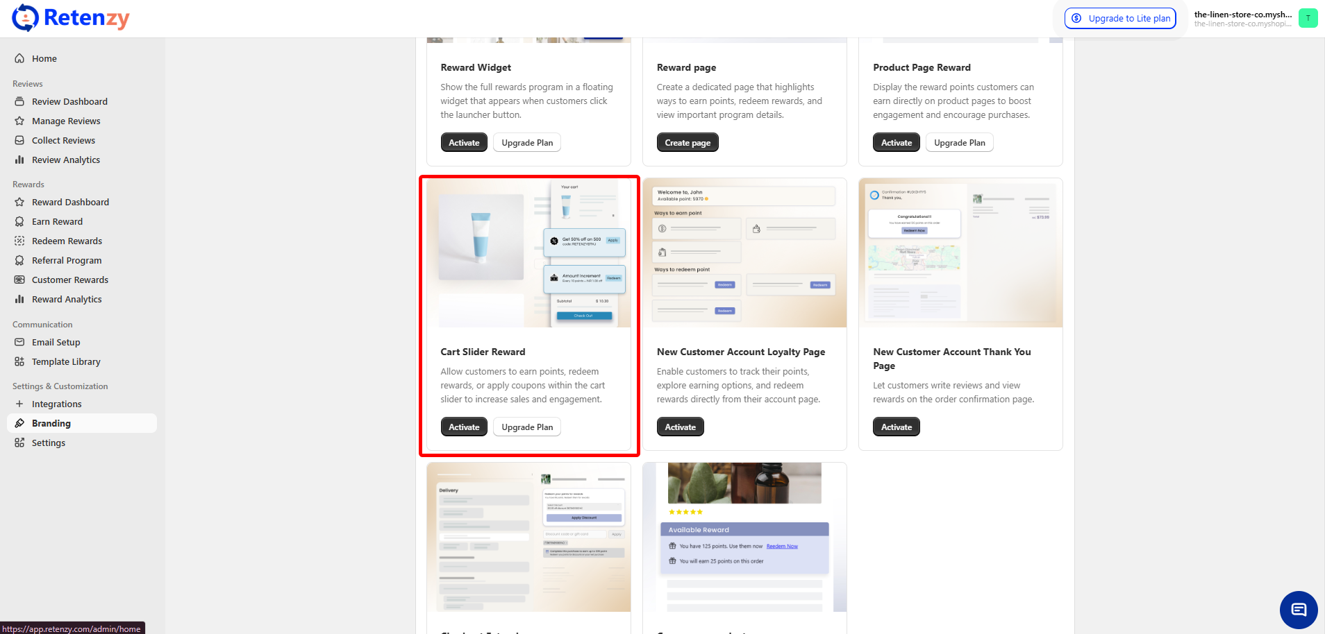 Step 3: Look for the option that says "Cart Slider Reward" and click the Activate button in front of it.
