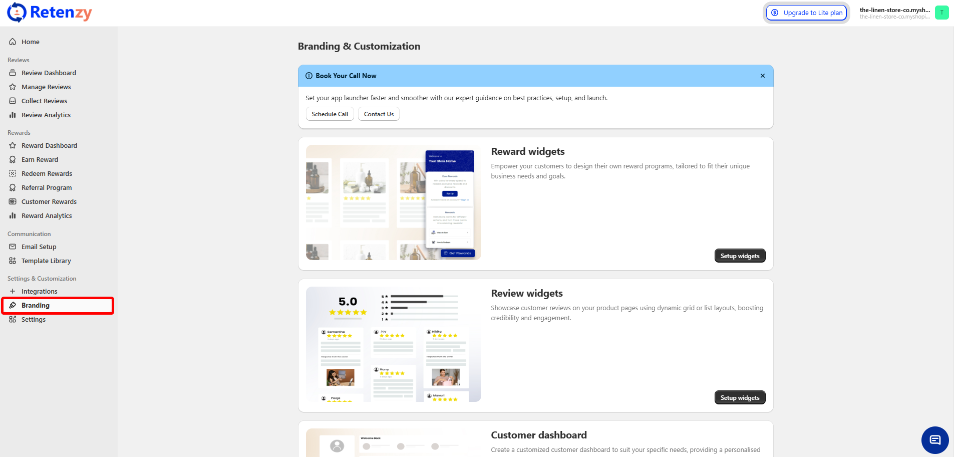 Step 1: Start from your Retenzy Home page. Click on "Branding" from the side menu.