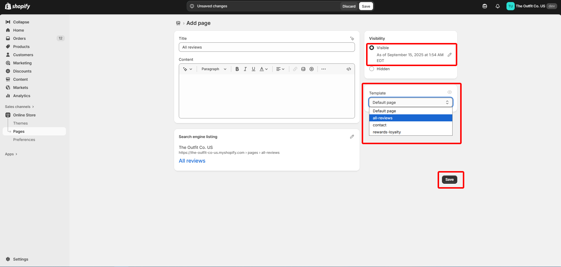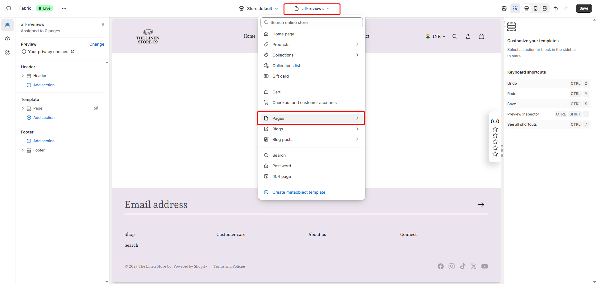 Step 2: Place the "Retenzy: All Reviews Page" extension in tempalte