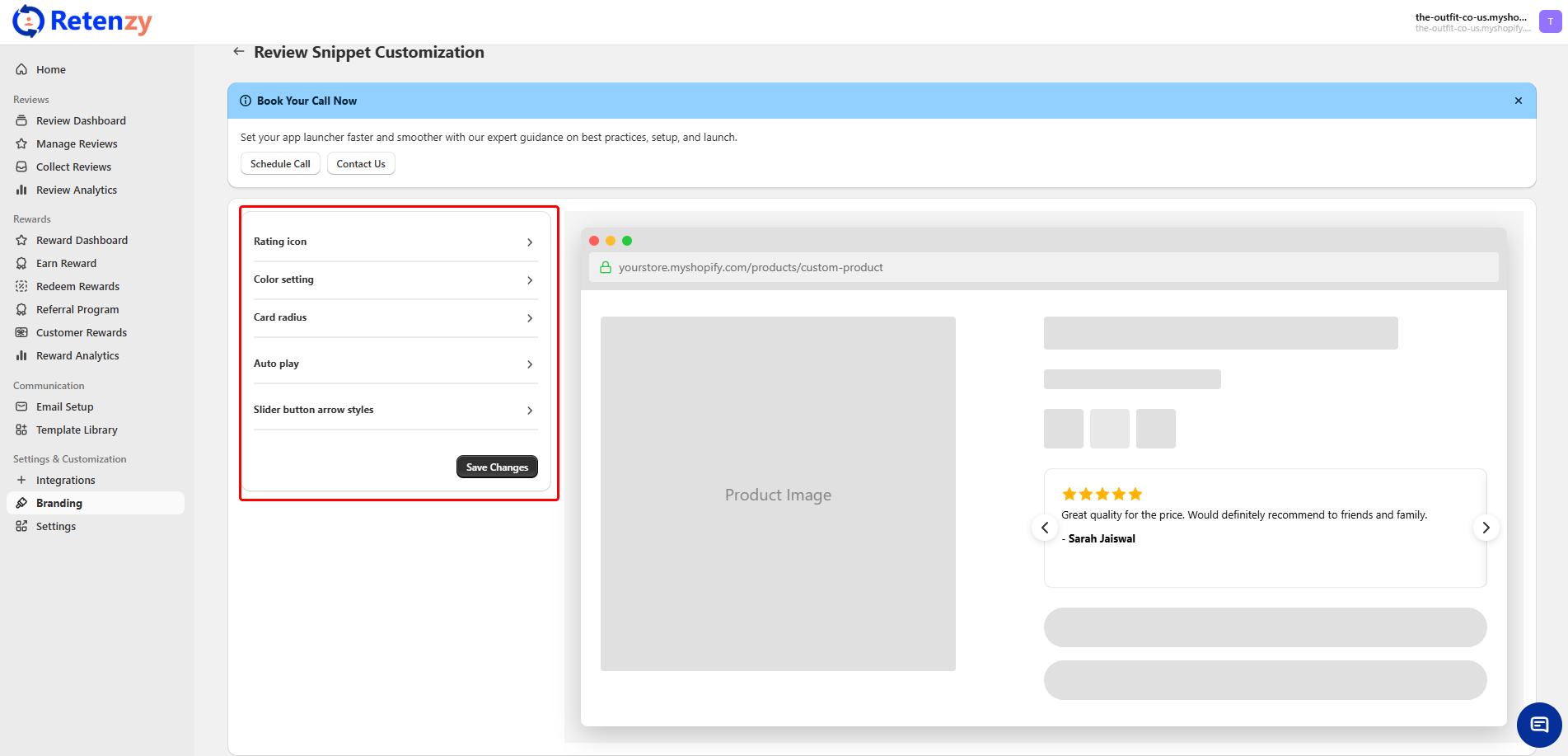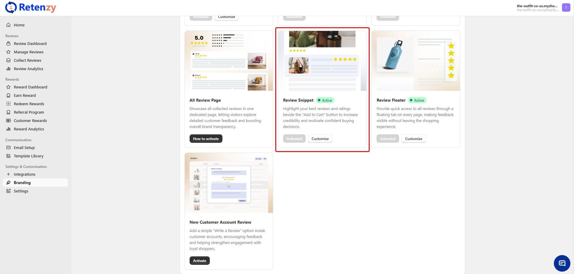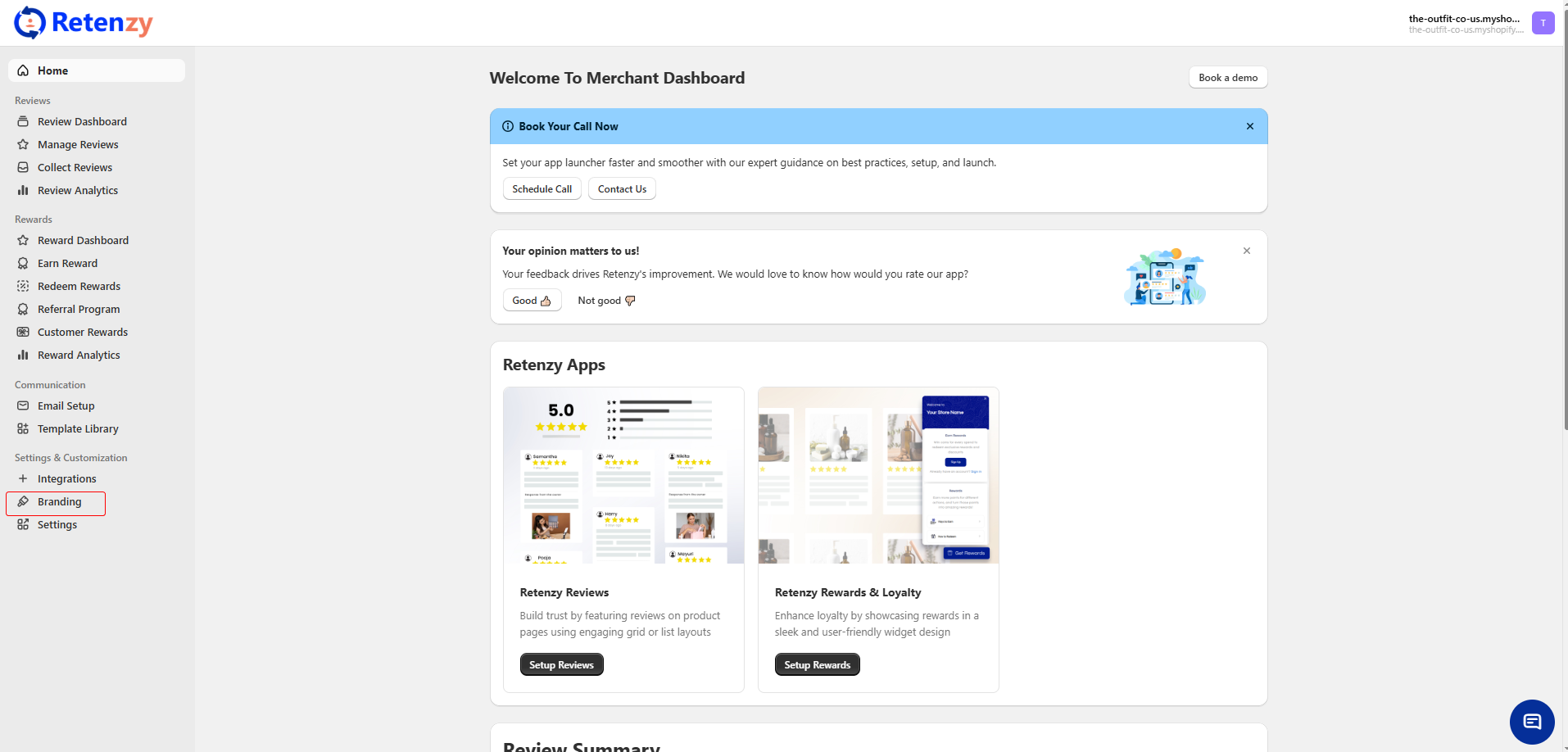 From your Retenzy Dashboard, navigate to the Branding section on the left side.