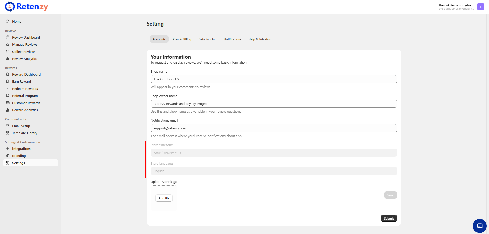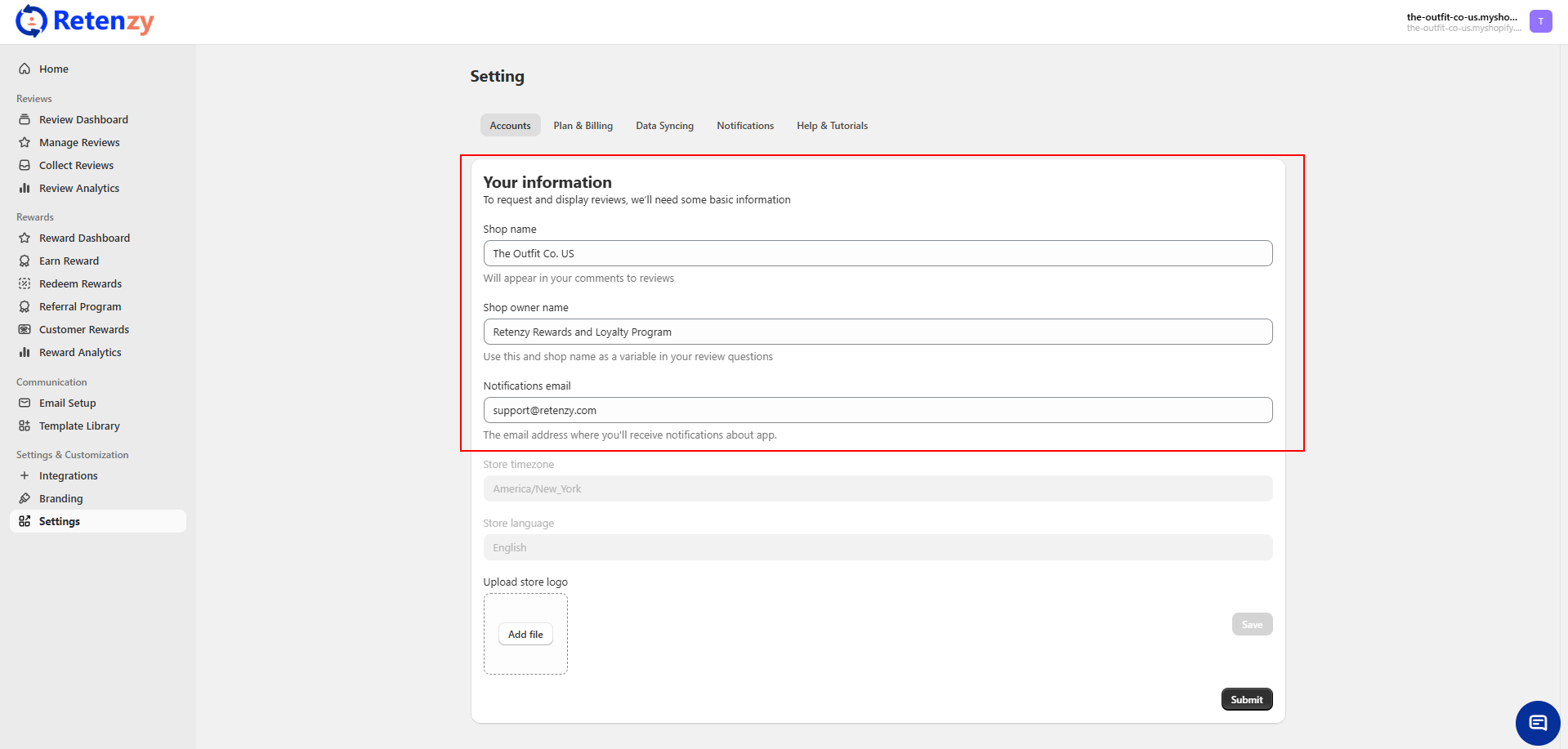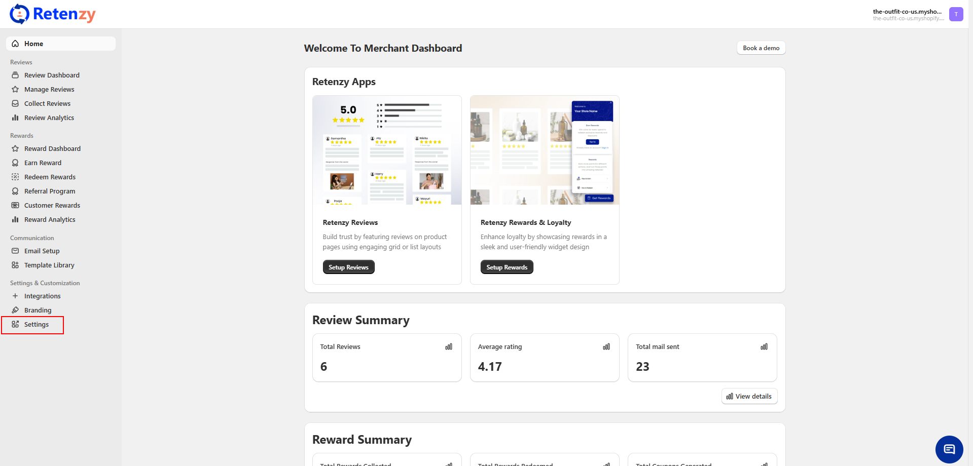 From the left menu of Retenzy, click on Settings under Settings & Customization.