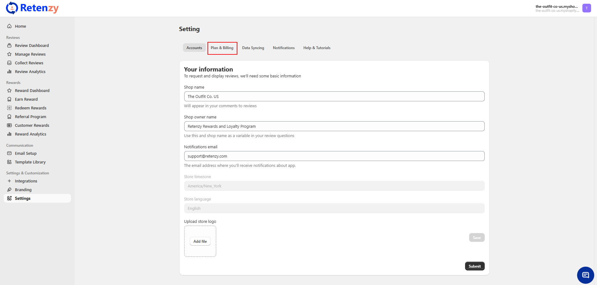 From the left menu of Retenzy, click on Settings under Settings & Customization.